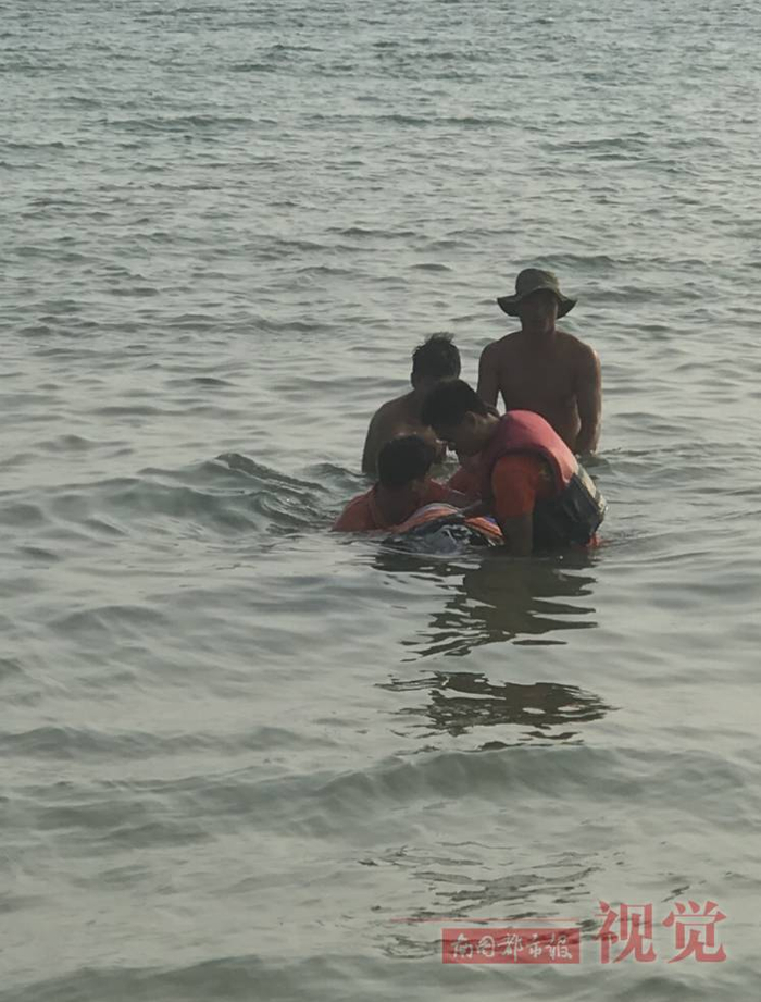 下午3点30分,小武在大东海2号救生台值班,“远远的好像又看到有鲸鱼游过来。”受伤的鲸鱼因为体力不支又游回了大东海近海。