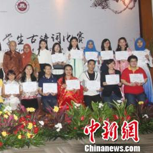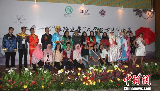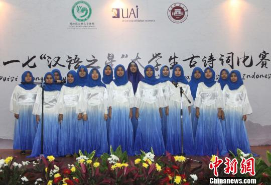 中新网雅加达12月9日电 (记者 林永传)由中国孔子学院总部/国家汉办主办、印尼阿拉扎大学孔子学院承办的2017“汉语之星”大学生古诗词大赛,9日在印尼高教部大礼堂举行。意境优美、意涵深刻的中国古诗词在印尼大学生多姿多彩的表演中,展现出诱人的艺术魅力。