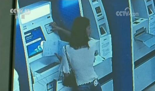 画面中的这名男子和另一名女子是犯罪团伙的重要成员,需要开发票的企业将款打过来之后,他们专门负责到银行ATM机上将款取出。