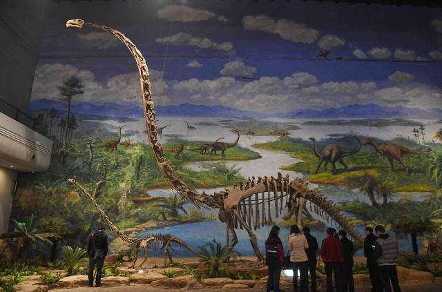 ↑观众在自贡恐龙博物馆展厅参观(12月7日摄)。编辑:徐亮