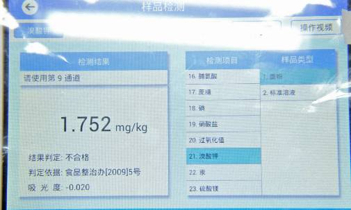 样品5中溴酸钾含量为1.752mg/kg,结果判定为“不合格”