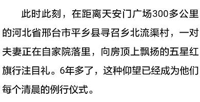 第二天,大雨依旧滂沱,国旗护卫队的脚步依旧铿锵,身姿依旧挺拔。张运兴和妻子也早早爬上屋顶,升起国旗。雨幕中,天安门广场上“中国加油!祖国万岁!”的欢呼,在他们的心里一阵高过一阵。