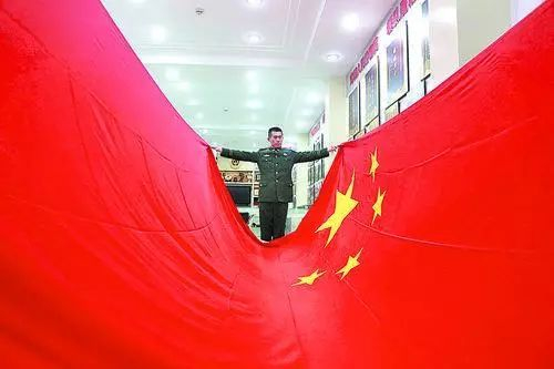 △张自轩拿出一面新的国旗,进行每天的例行检查。崔 靖 摄