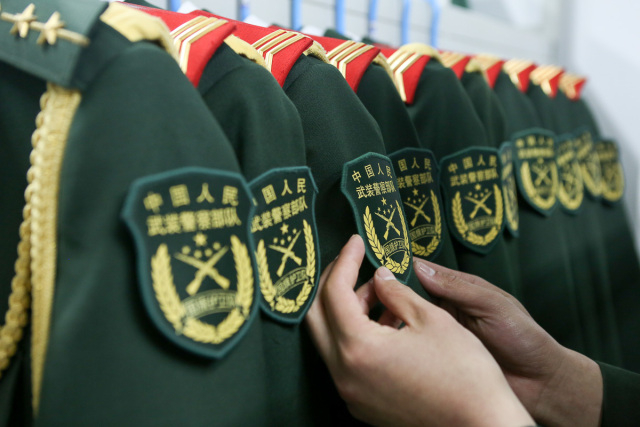 △把礼服上的徽章都摆放整齐。崔 靖 摄