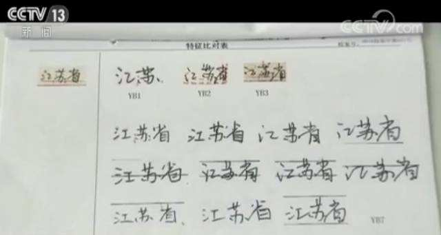 凡是红色印框里面需要鉴定的字迹都让她写了,比如说江苏省、准考证的号码,还有其他相关的字迹。