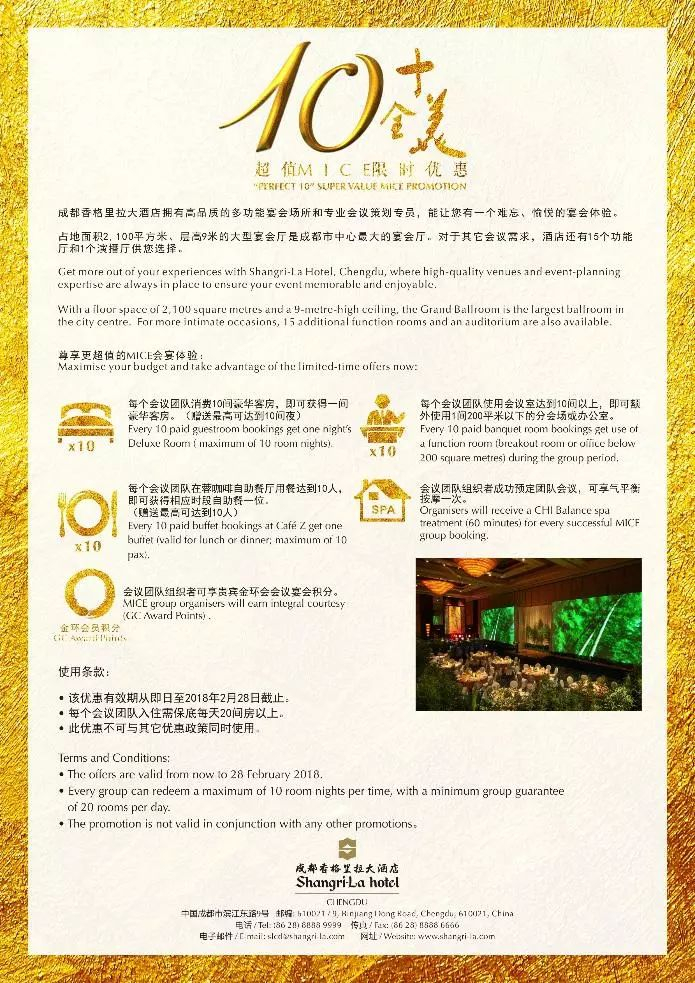 濯锦之江,十年成香!几乎每个成都人都有一份香格里拉情结,或痴迷大堂酒廊的曼妙香氛,或留恋豪华阁的廊桥夜景,或馋涎蓉咖啡的海鲜大餐,还有Mooney’s的微醺酒精惹得晚五朝九不想睡……