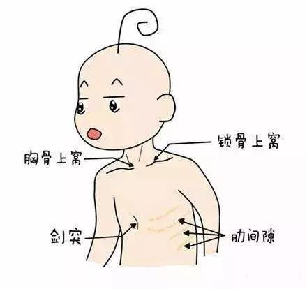 判断宝宝病情是否加重时,有一个重要体征一定不能忽视,我们叫做“吸气凹陷”也叫“三凹征”。①