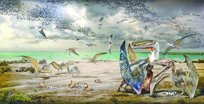 “我们认为这些数量巨大的翼龙和翼龙蛋化石很可能经历了多次湖泊风暴事件,这种高能风暴经过翼龙的巢穴,将翼龙蛋及不同大小、不同性别的翼龙带入湖中岸边,经过短时间漂浮聚集后,与被撕裂分散的翼龙遗体一起被快速埋藏。” 汪筱林告诉记者。