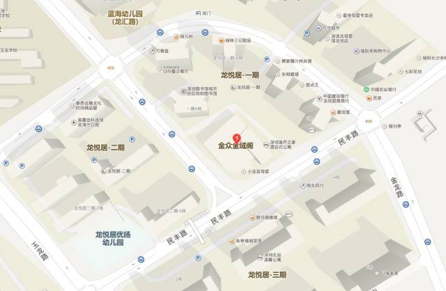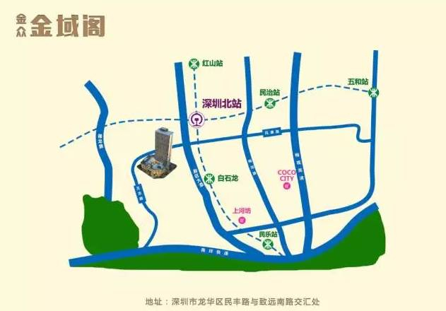 金众金域阁位于深圳市龙华区民丰路与致远南路交会处,共有266套公共租赁住房。建筑面积约40平方米的单身公寓206套,建筑面积约50平方米的一房一厅60套。