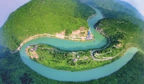 万峰争雄葱翠如洗,澧水蜿蜒玉带环腰。