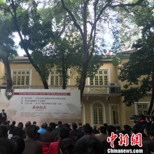 中新网广州12月11日电(蔡敏婕 杨媛)百年细叶榕、罗汉松……古树木丛中,一座鹅黄色砖木结构的两层建筑格外醒目,这里是位于广州起义路的广州公社旧址。11日,广州起义爆发90周年纪念活动在该旧址举行。