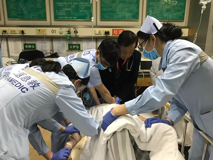 急救著名专家、中山一院急诊科廖晓星教授坐阵院内抢救。