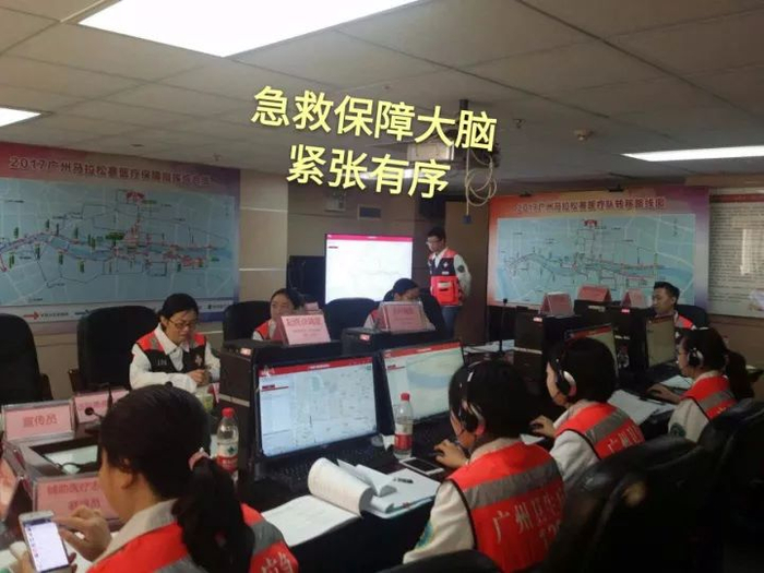 “我们马拉松赛道的急救保障级别,已经成为比医院还要安全的地方。”王西富笑言,广州马拉松赛道布置了36部急救车,每部急救车配置2组急诊科医护人员、两套急救设备,全程配置72部手动除颤器、50个AED移动骑行救护员,每100米就有一个医学生志愿者,赛道上还有约300多名医师跑者。人们看不见的“幕后”,更有广州急诊急救界最强大的专家指挥团,可以说“武装到了牙齿”。