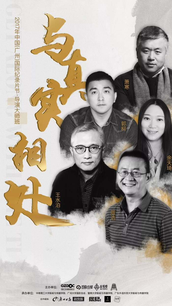 想拍好纪录片不容易,由中国(广州)国际纪录片节、未视频及华南理工大学联合发起的导演大师班活动将于2017年12月11日-14日,16日举行,届时我们将诚邀5位大师级纪录片导演:王水泊、萧寒、余天琦、郭柯、周浩,和深爱纪录片的你们面对面交流分享“与真实相处”的故事。