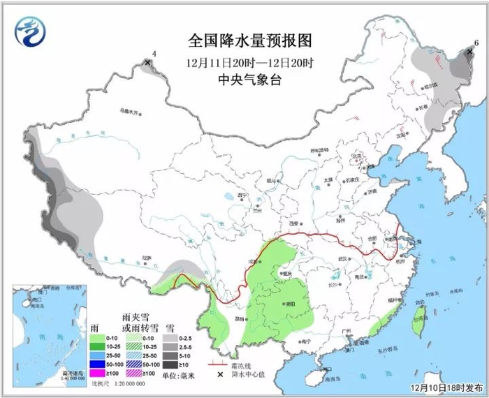 中央气象台预计,11至12日,新疆阿勒泰和西南部山区、西藏西部、黑龙江中东部等地有小到中雪或阵雪,其中,黑龙江东北部、西藏西南部等地局地有大雪;西南地区东部、云南西北部和东部等地有小雨或阵雨。