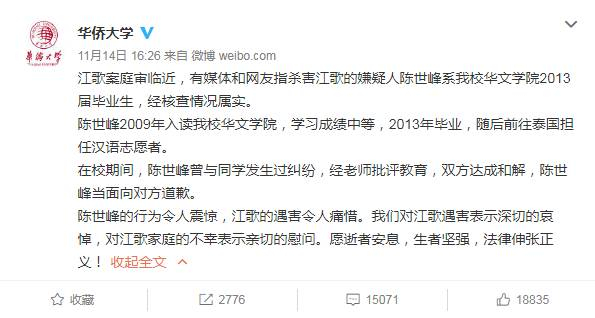 华侨大学在微博中曾称