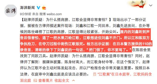 最新消息:律师称,刀是刘鑫递给江歌的