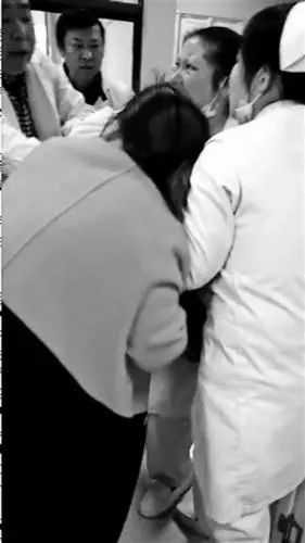 视频中,一名护士被一女子抓住头发,在众人拉劝下女子才松手,护士倒地后被同事扶起坐在椅子上哭.。该名护士本身为孕妇,在被打后出现了流产的征兆。