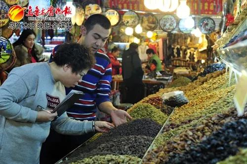 胡玲被店里“葡萄干的爷爷”、“葡萄干奶奶”和“葡萄干的祖父”等名字所吸引。如孜帮着给姐姐介绍各类葡萄干的种类和口感,胡玲一一记下来,她说,一会儿吆喝就靠这些了。