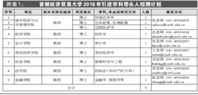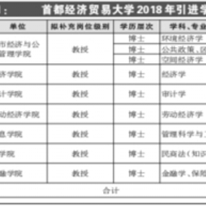 参见附表“首都经济贸易大学2018年招聘计划”。