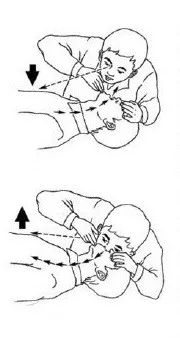 抬被施救者下巴,使其头部后仰,充分打开气道,检查口腔有无异物,然后口对口吹气,吹气时捏紧鼻孔以胸口起伏为准。