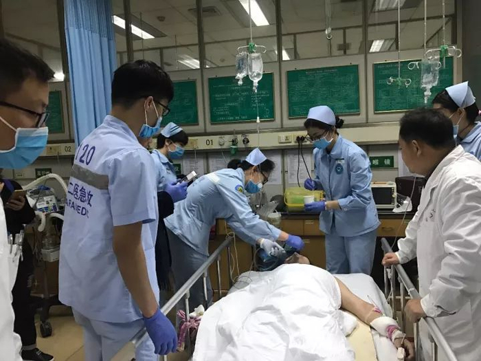 省二医立即启动应急预案,开通绿色通道,开展院内抢救,准备好呼吸机、气管插管等各项急救设备器械。