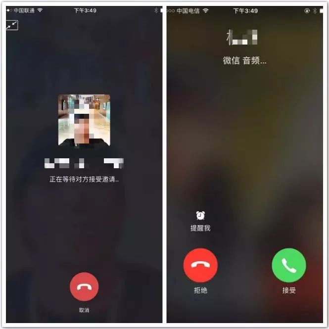 左图为拨打界面,右图为接听界面