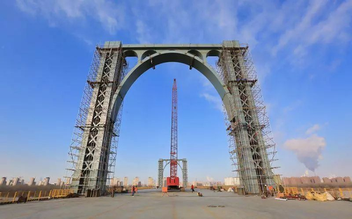 沈阳东塔跨浑河桥 桥塔已吊装完成 相当于18层楼高
