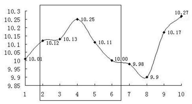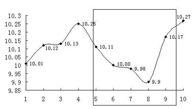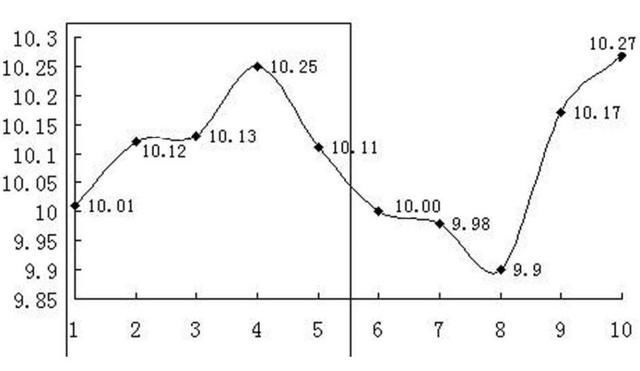 即:(10.11+10.00+9.98+9.90+10.17)÷5=10.032(如图1-5)