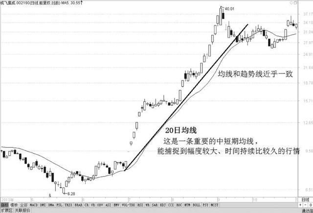 1个月大约共有20个交易日,故20日均线又被称为“月均线”。