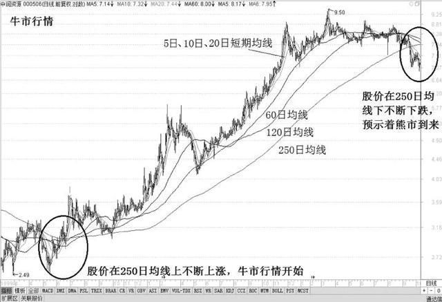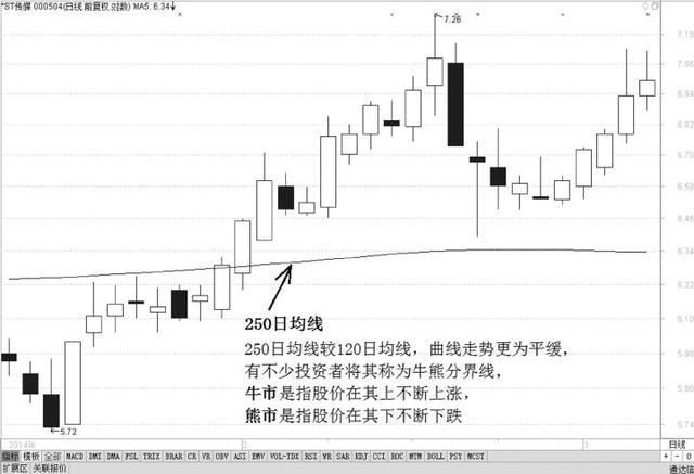 1年里约有250个交易日,所以该线又被称为“年均线”。