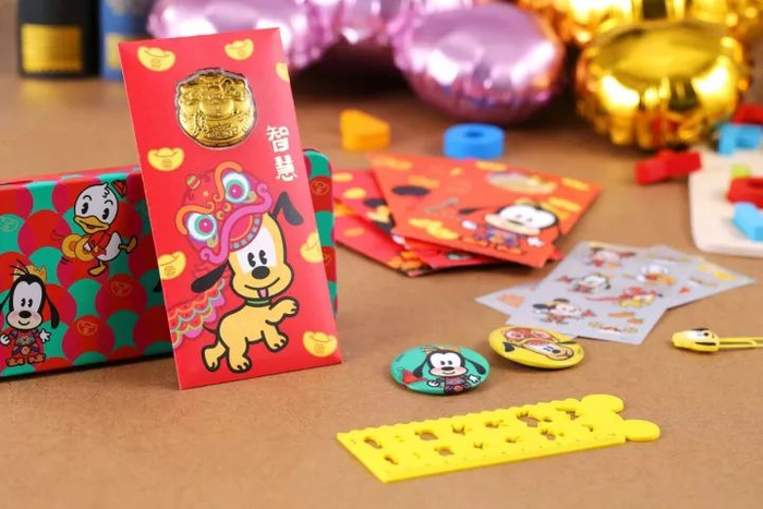 以小狗布鲁托和高飞为主要形象,与2018戊戌年生肖相合;迪士尼卡通形象融合中国传统年俗元素,中西合璧,传承中华千年生肖文化,连年永续,祝福相随。