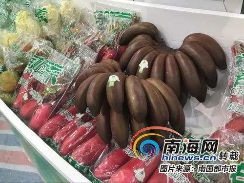 11日下午,在海南馆的昌江展区柜台上,数挂香蕉显得格外引人注目。与其他样式鲜亮、色泽金黄的香蕉不同,这几挂香蕉都是通体深褐色近黑色,仿佛已经“放坏了”的一样。