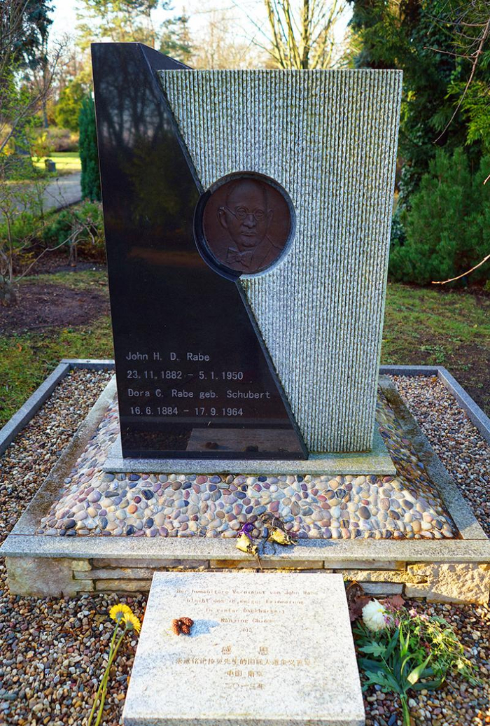 2013年12月11日,由中国南京市捐建的拉贝先生纪念墓园在德国柏林落成。墓碑基座镶嵌着南京雨花石。