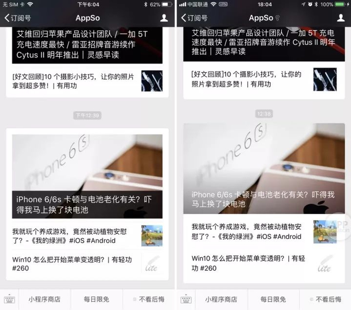 除此之外,这次更新还有一些外观上的变化,比如微信公众号内的卡片显示,也有了一定的变化。AppSo(微信公众号 AppSo)认为,新版的视觉效果更好看了。