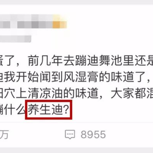 这不,有网友表示,自己在舞厅跳舞时,居然开始闻到舞池里年轻人身上有风湿膏、红花油和藿香正气水的味道了!