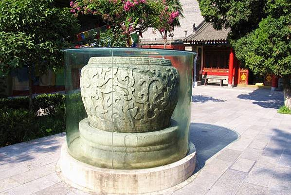 在寺中二殿前,可以看到一个汉白玉莲花缸,用一块汉白玉石雕成,缸外雕有花锦,缸内有乾隆年间刻的隶书铭文,俗称“乾隆兰花缸”。