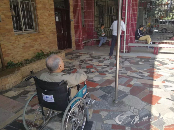 院子中,67岁的欧伯坐在轮椅上晒太阳,作为一名重度心智障碍者,上厕所、洗澡、吃饭都都能自己完成,但不懂如何交流和表达情绪,有问题唯有啊啊的叫,看到他的右手手指一直搭在左手的关节处,托养中心的工作人员明白他的感受,痛风让他感觉不适,于是帮他按摩手指。