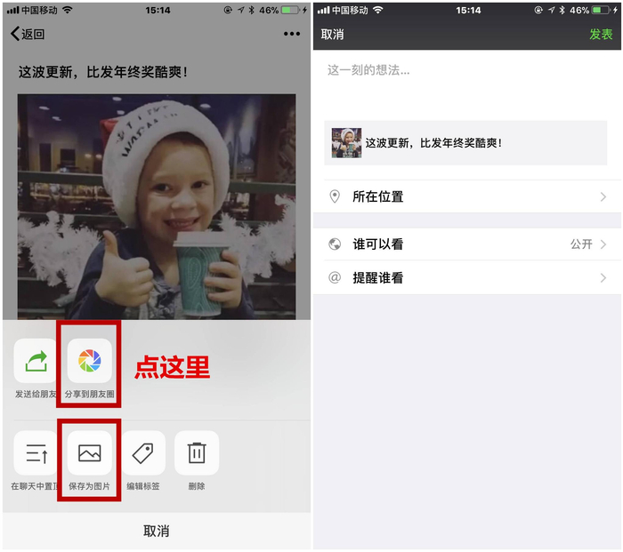 选中「分享到朋友圈」可以将笔记内容一键分享到朋友圈。
