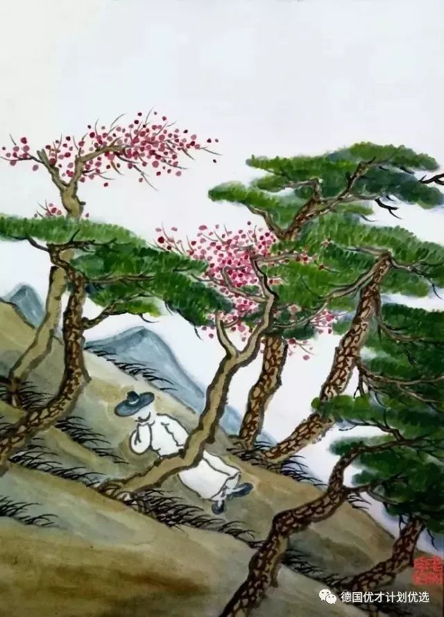 午后风日晴妍,独自躺在山间。松下做了一梦,梦里拼命数钱。