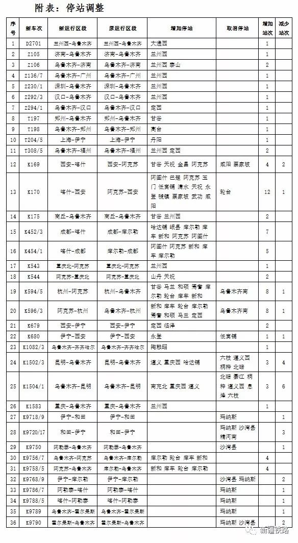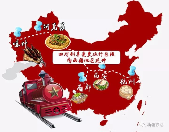 12月28日新疆铁路大调图:喀什直达西安 喀什直达成都 阿克苏直达杭州