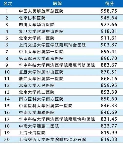 在2016年的国内顶级医院排名中,长海医院位居第19位,合肥的两所医院安徽医科大学第一附属医院、安徽省立医院分别位居59位跟87位。