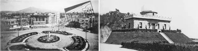 (左)日军攻击之前的南京市中心——新街口广场。(右)20世纪30年代的南京紫金山天文台,被称为世界四大古天文台之一。