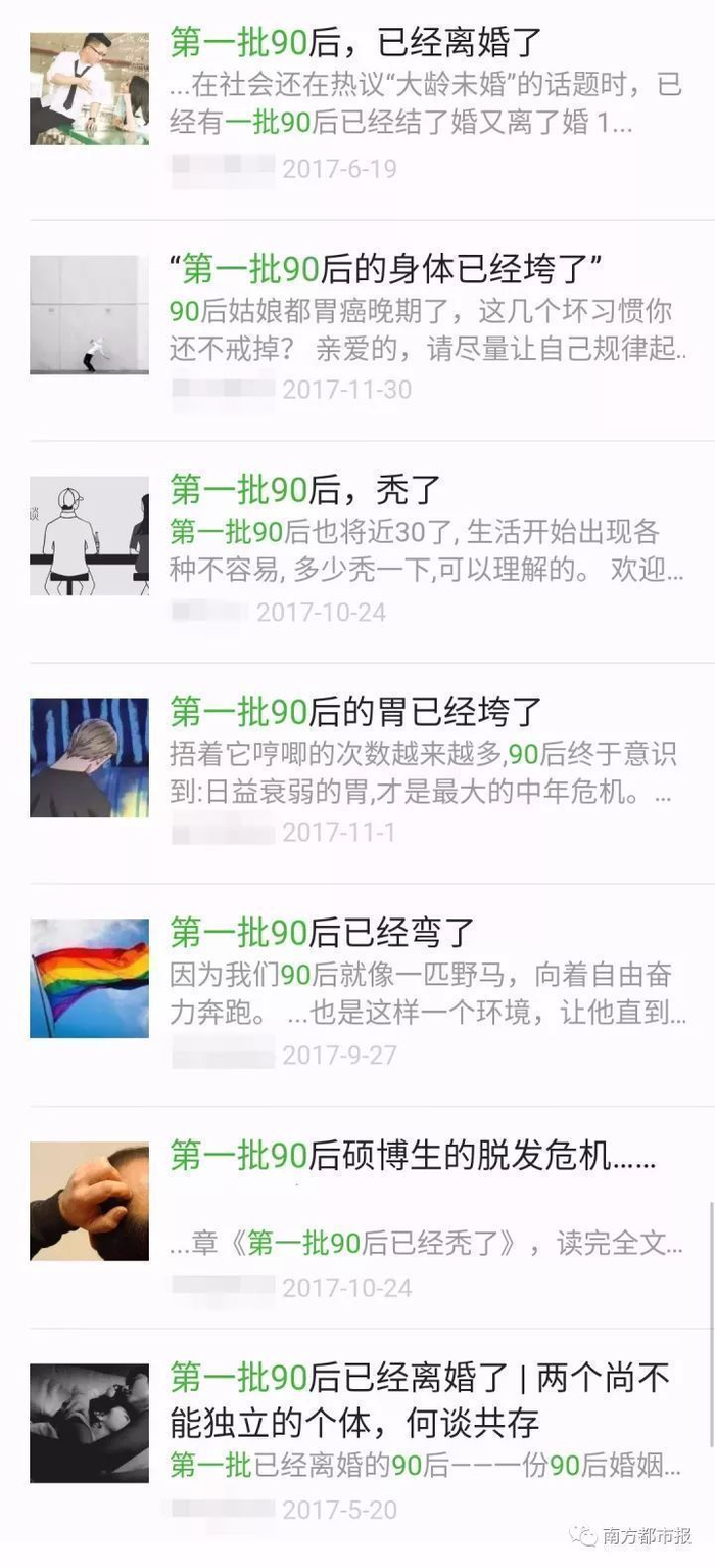 现在在网上稍微一搜“第一批90后……”,你就可以找到这些答案:第一批90后已经出家了、第一批90后已经秃了、第一批90后的胃已经毁了、第一批90后已经离婚了、第一批90后的卵巢都衰退了……