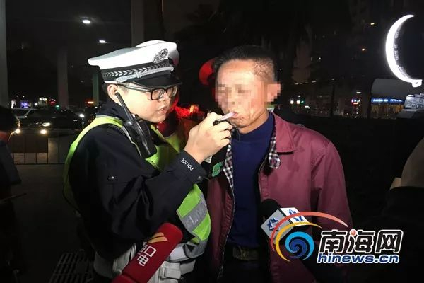 海口交警夜查酒驾,司机接受检测。南海网记者陈丽娜摄
