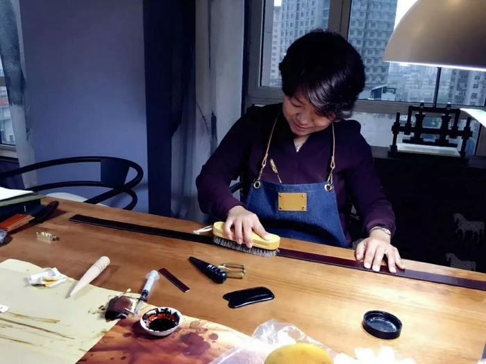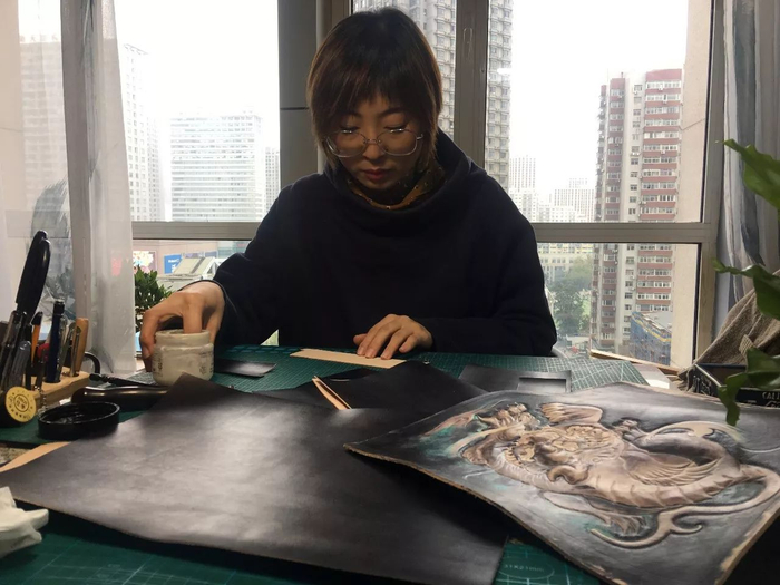 制作者的细心和专注是制作皮雕的先决条件,因为它需要高度集中所有精神,每一刀落下,便无法修改;每一笔颜色画上,就无法擦去,仿佛一段不可回望的旅程,只能如履薄冰向前,但凡失误,就前功尽弃,因而愈显珍贵。