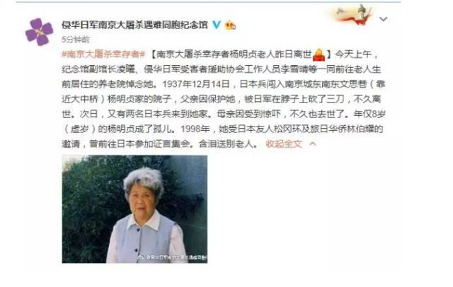 而在12月10日凌晨2点,最年长的南京大屠杀幸存者管光镜老人也与世长辞,享年100岁。
