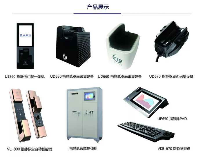 集成类的产品有指静脉锁、指静脉键盘、指静脉速通门、指静脉枪弹柜、指静脉安全文印系统等,成为国内指静脉产品最丰富的科技公司。