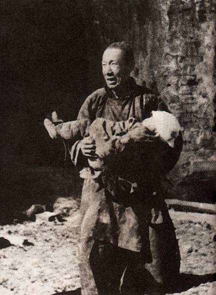 紧抱孩子的母亲,被日军砍下头颅