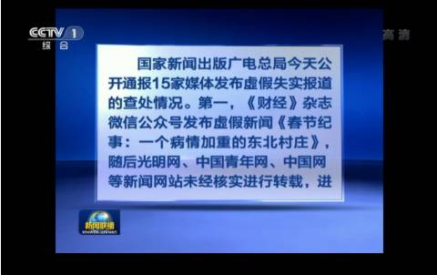 近年来,新闻的真实性越来越受到质疑。很多传播者在报道的过程中有意炒作,或者在没有证实事情和新闻真实性的前提下,主观臆断地进行不真实传播,或是做个标题党,制造新闻噱头。去年4月,国家新闻出版广电总局曾公开通报15家媒体发布虚假失实报道的查处情况。